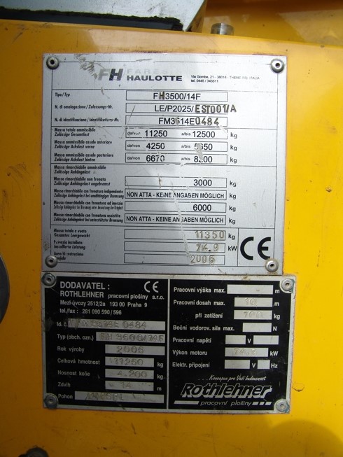 | Pracovní výška - dosah (m) | A | 14.3 |