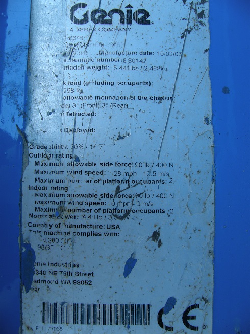 | Pracovní výška - dosah (m) | A | 9.92 |