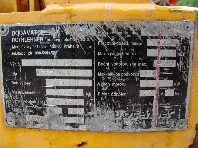 | Pracovní výška - dosah (m) | A | 6.45 |