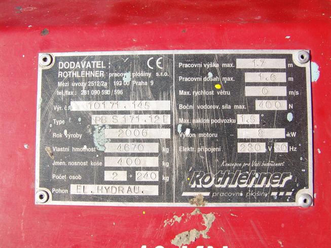 | Pracovní výška - dosah (m) | A | 17.1 |
