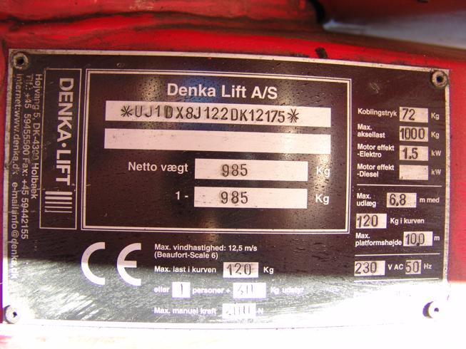 | Cage dimensions (m) | D x C | 0,9 x 0,6 |