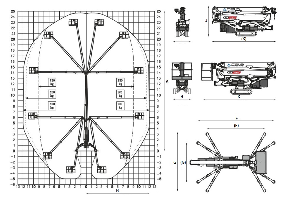 | Working height - radius (m) | A | 25 |