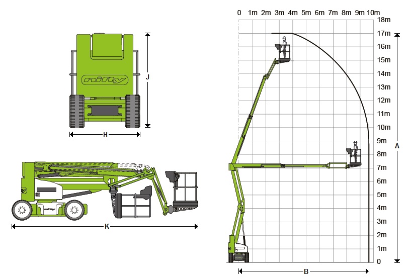 | Working height - radius (m) | A | 17 |