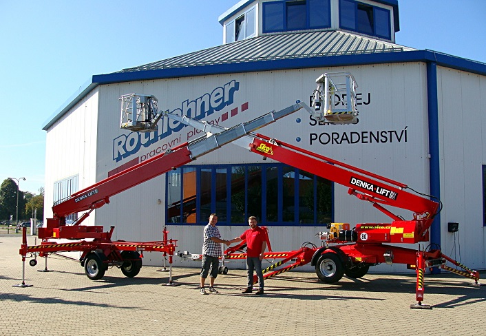 Převzali jsme dvě nové přívěsné plošiny Denka-Lift DK 25 a Denka-Lift DL 30 od našeho dodavatele firmy Rothlehner. Přívěsná plošina Denka-Lift DL 30 je teprve třetím kusem tohoto typu vyrobeným po převzetí výrobního programu dánské firmy Denka-Lift německou firmou Rothlehner.