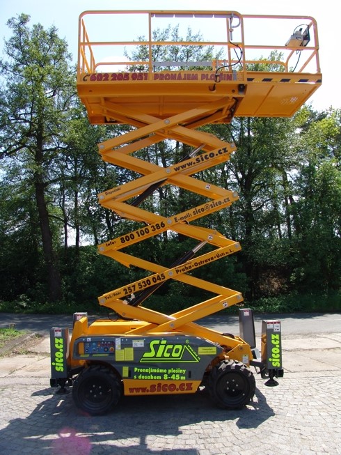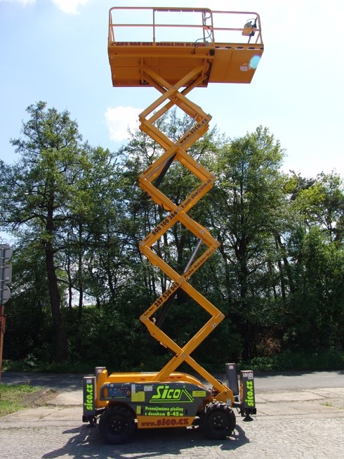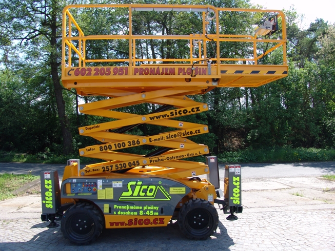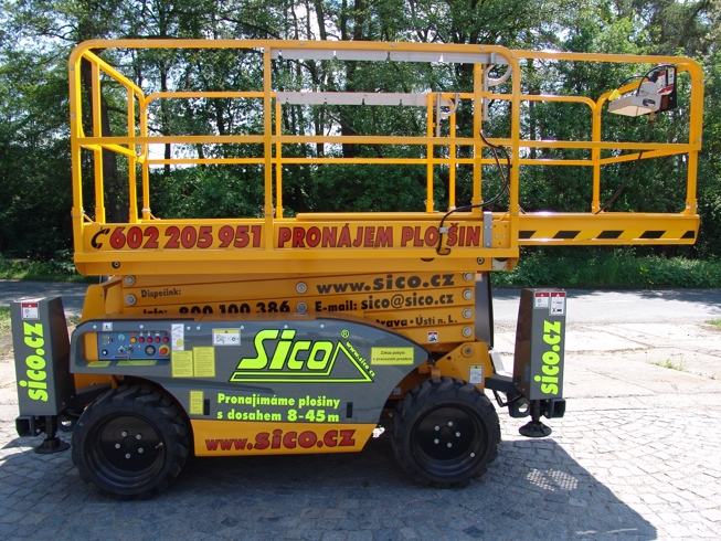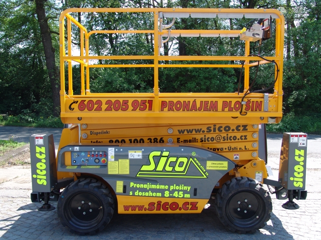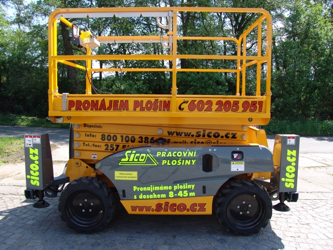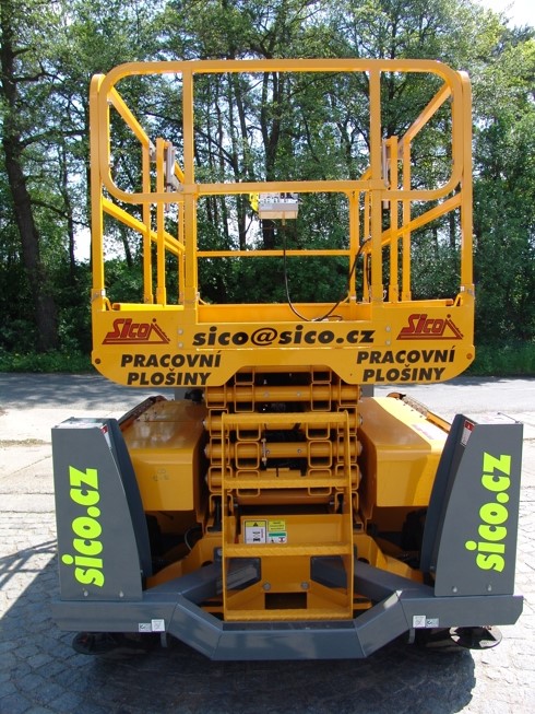 Velký pracovní koš s nosností 450 kg poskytuje možnost současné práce několika pracovníků zároveň. Maximální pracovní dosah montéra je 12 metrů. Hydraulický systém zdvihu a pojezdu plošiny je poháněn dieselovým motorem.