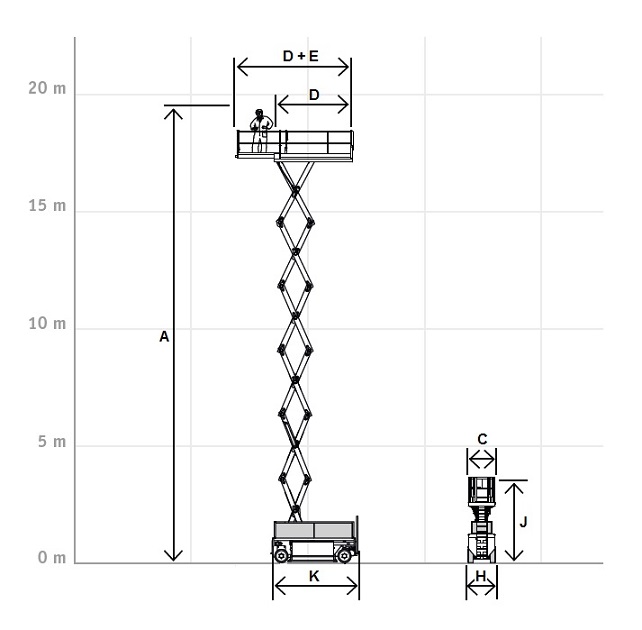 | Pracovní výška - dosah (m) | A | 18.8 |