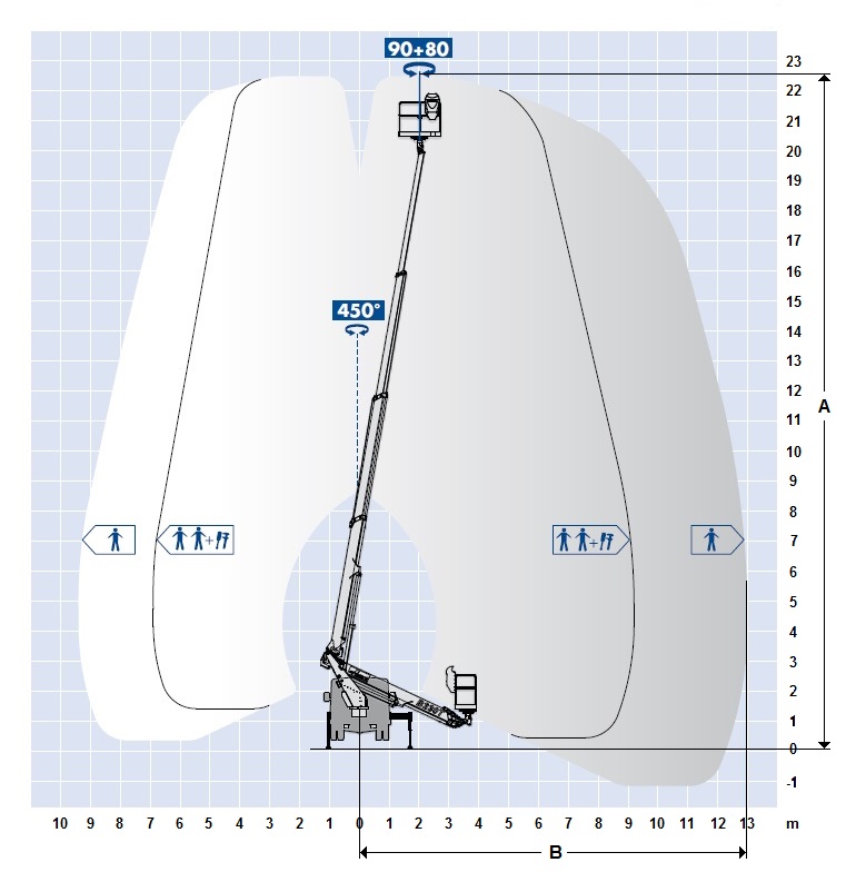 | Pracovní výška - dosah (m) | A | 22.5 |
