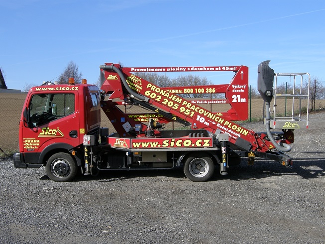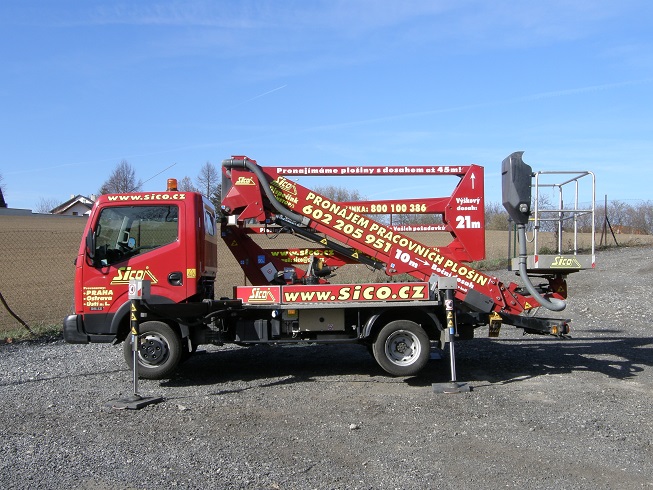Plošina NISSAN CABSTAR E210PX je využívána pro: Bilboardy, reklamy, Čištění okapů, Film, Montáže exteriér, Opravy a montáž osvětlení, Opravy a mytí fasád, Opravy střech, Prořezávka zeleně