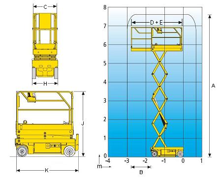 | Pracovní výška - dosah (m) | A | 7.77 |