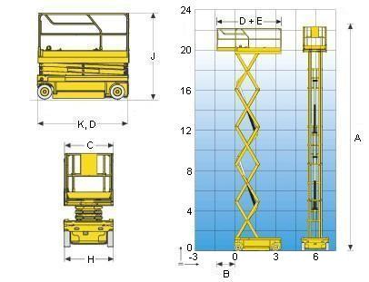 | Pracovní výška - dosah (m) | A | 22.5 |